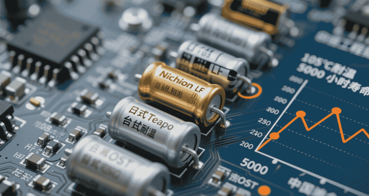 - Condensadores ≥ 105 °C, de preferência de polímero
